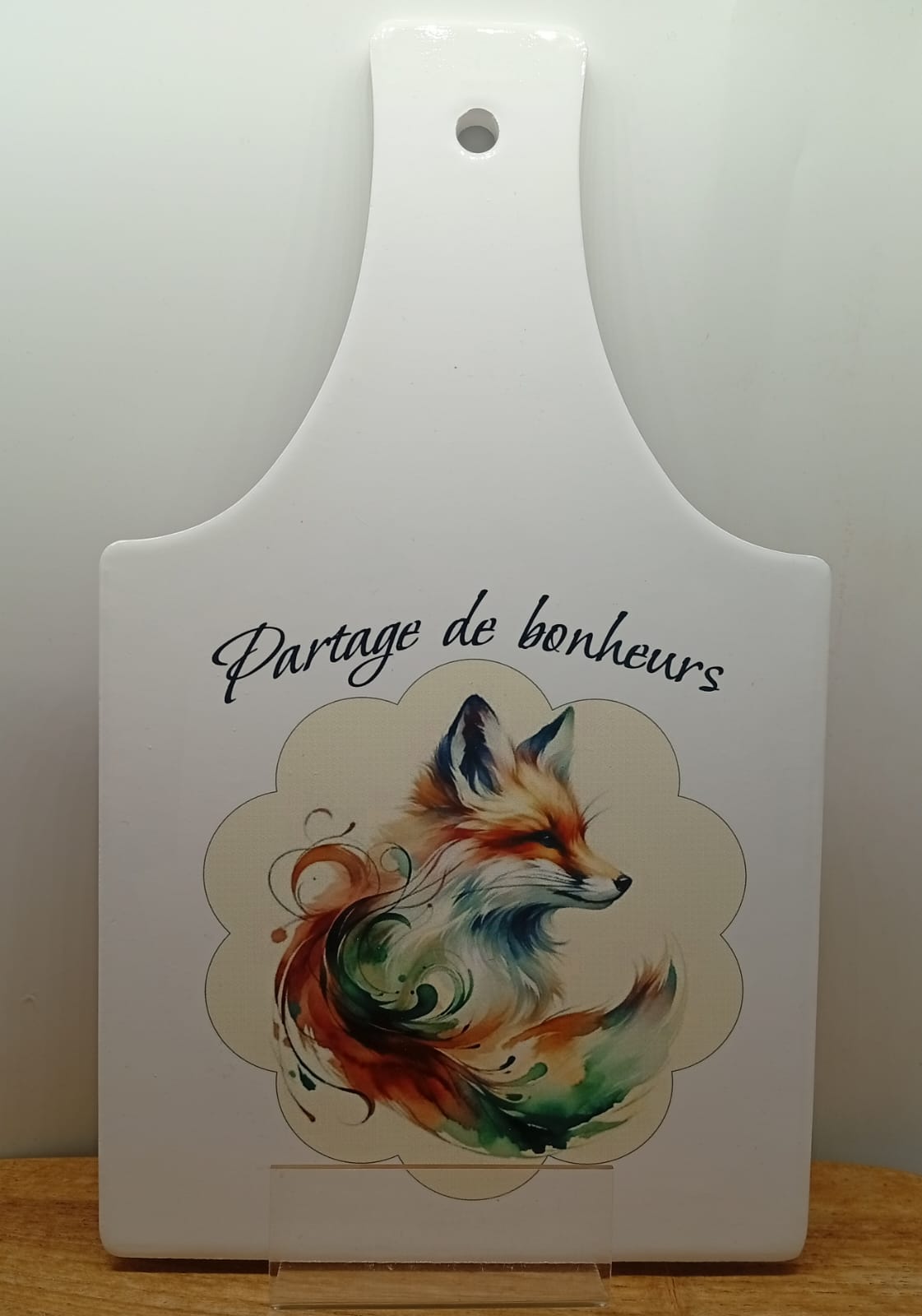 Dessous de plat en céramique personnalisé, sublimé par un motif fleuri et coloré et la phrase inspirante : « Partage de bonheurs ». À la fois décoratif et fonctionnel, il protège vos surfaces tout en apportant une touche de poésie et de positivité à votre intérieur. Un bel objet du quotidien, idéal comme idée cadeau.