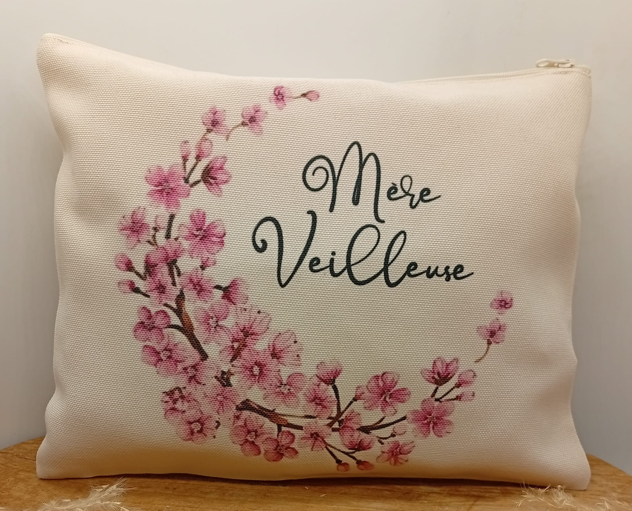 Pochette personnalisée en tissu, ornée d’un motif fleuri et coloré, accompagnée de la phrase inspirante : « Mère-veilleuse ». À la fois pratique et élégante, elle est idéale pour ranger maquillage, accessoires ou petits essentiels du quotidien, tout en apportant une note de poésie et de positivité. Parfaite à offrir ou à s’offrir.