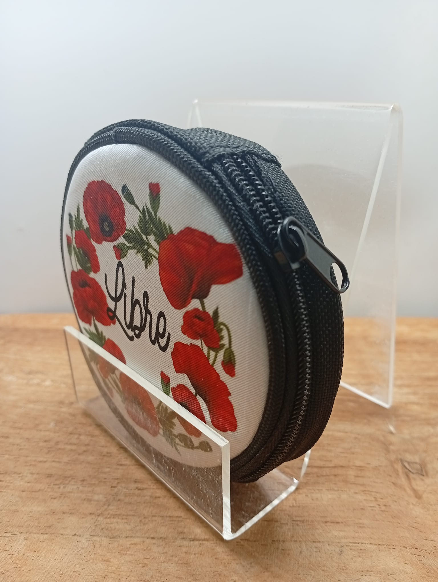 Petit porte-monnaie rond personnalisé, confectionné en tissu et décoré de motifs fleuris et colorés. Compact et pratique, il est idéal pour ranger monnaie ou petits indispensables, tout en diffusant un message positif et poétique au quotidien. Un accessoire charmant à offrir ou à s’offrir.