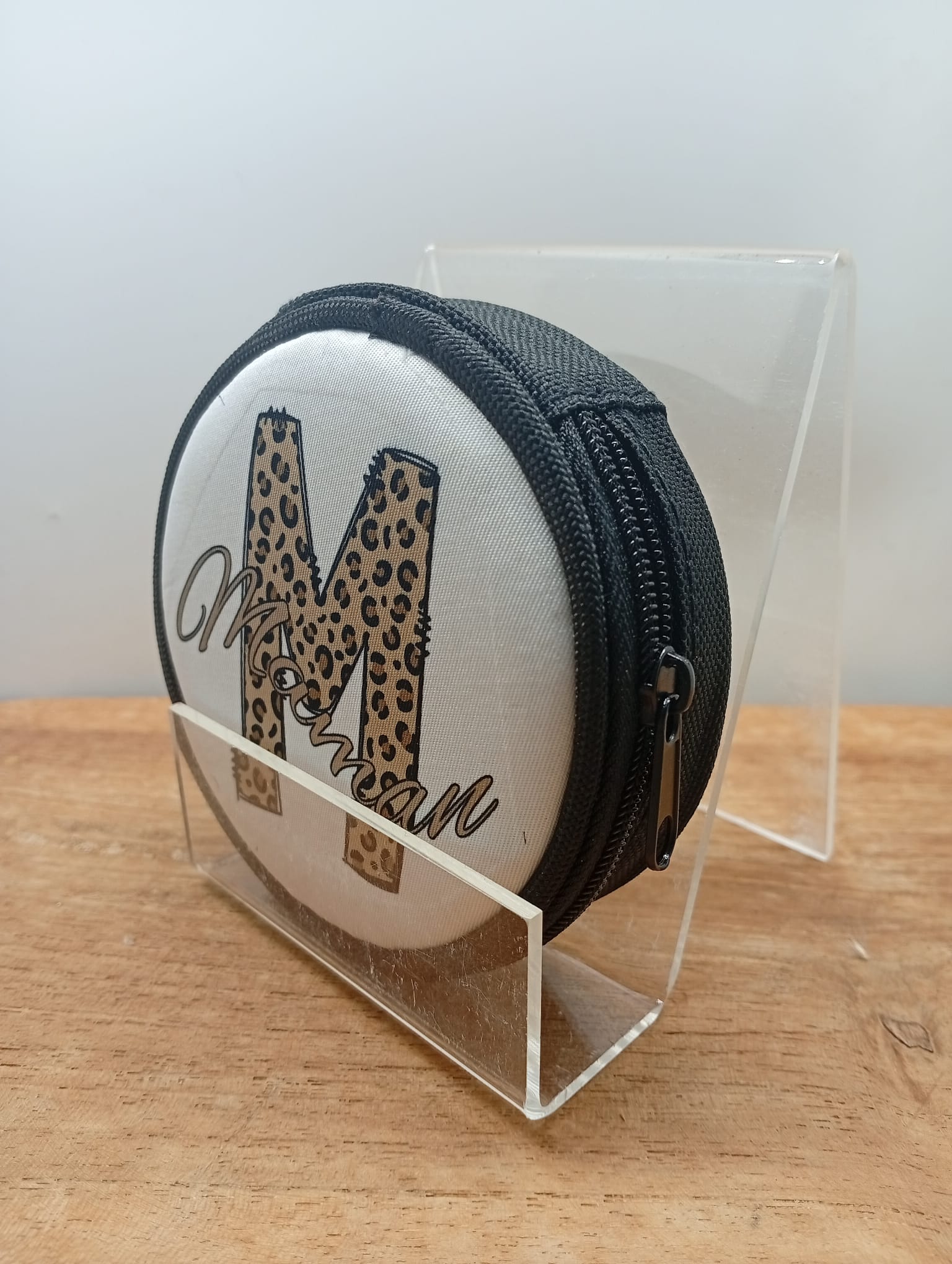 Petit porte-monnaie rond personnalisé, confectionné en tissu et décoré de motifs fleuris et colorés. Compact et pratique, il est idéal pour ranger monnaie ou petits indispensables, tout en diffusant un message positif et poétique au quotidien. Un accessoire charmant à offrir ou à s’offrir.