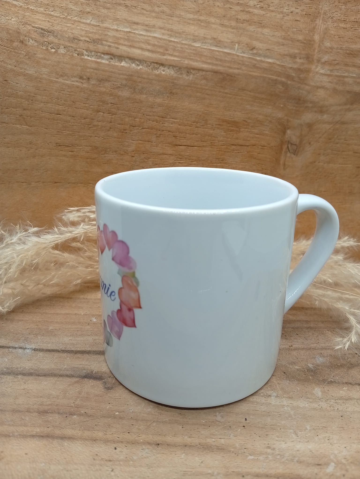 Tasse personnalisée au design fleuri et coloré, sublimée par la phrase inspirante : « Mamie ». Un objet du quotidien à la fois esthétique et motivant, idéal pour apporter une touche de douceur et de positivité à chaque pause café ou thé. Parfait comme cadeau ou pour se faire plaisir.